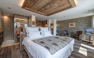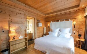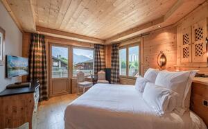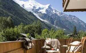Die 19 Zimmer und Suiten, alle mit Balkon und Bergblick, vereinen die Harmonie der edlen Materialien. Zimmer mit alpinem Design und Blick auf den Mont Blanc, Brévent oder Les Drus