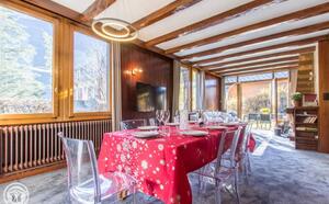 Nestled in a quiet and privileged area of Chamonix, this large, charming individual chalet located 300m from the town center benefits from incredible views of Mont-Blanc and its Aiguilles. The chalet, which is surrounded by vast grounds, is equipped with a Spa, a sauna, a fireplace, and even a TV room. An ideal address for unforgettable holidays in the heart of the most legendary resort in the Alps. Maximum capacity: 10 to 12 people.