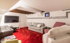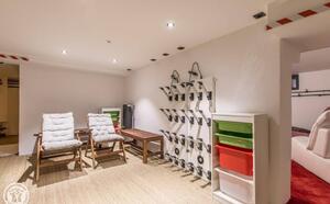 In the basement of the chalet: TV room with games and DVDs, storage room with shoe dryers, Sauna.