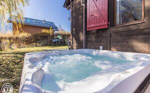 Land around the chalet, terrace with barbecue garden furniture, parasol and deckchairs. Outdoor spa. Wifi internet.