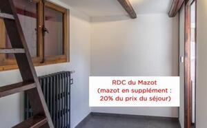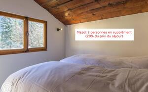 Possibility of renting a small independent mazot located on the land at an additional cost (capacity for 2 people, with shower and toilet on the ground floor, and sleeping area upstairs).