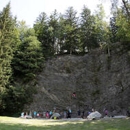 Das Tragen von Helm und Protektoren wird dringend empfohlen. Mountainbike, das für Abfahrten geeignet ist, mit geeignetem Bremssystem.